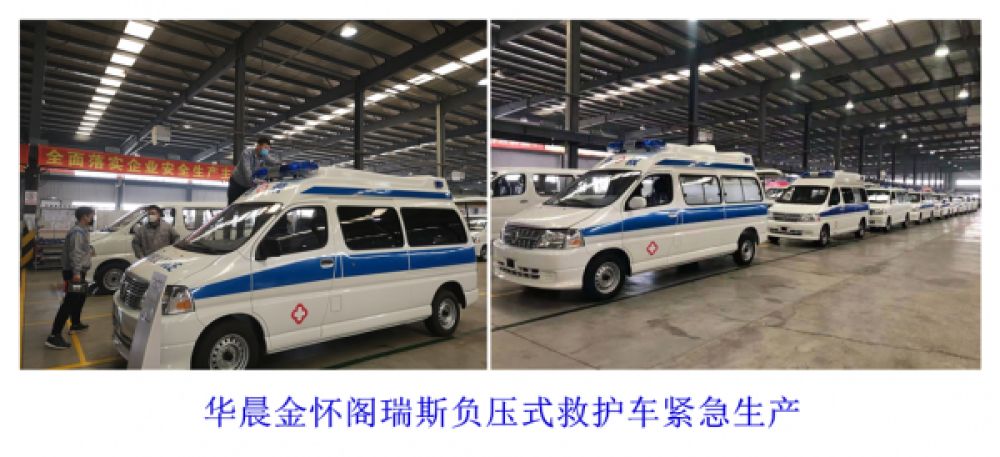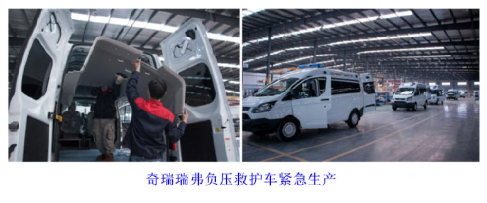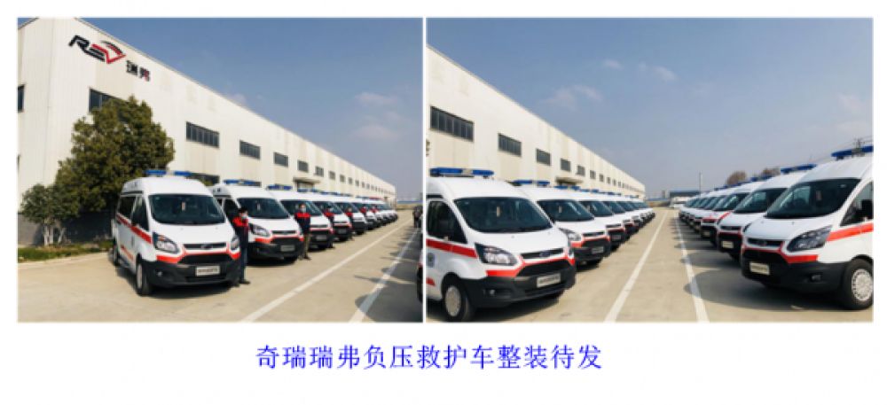 2月5日下午,奇瑞控股集团旗下奇瑞瑞弗特种车辆技术有限公司车间内,经过10天加班赶产的20辆负压救护车全部完工并顺利交付。2月6日,这批负压救护车陆续抵达抗疫一线,用于重大传染病人的安全隔离与转运。2月6日,华晨集团紧急赶工的首批10台负压式救护车也正式下线,陆续驰援抗疫一线,为“抗冠”一线的医护人员和病人送去“铠甲”。