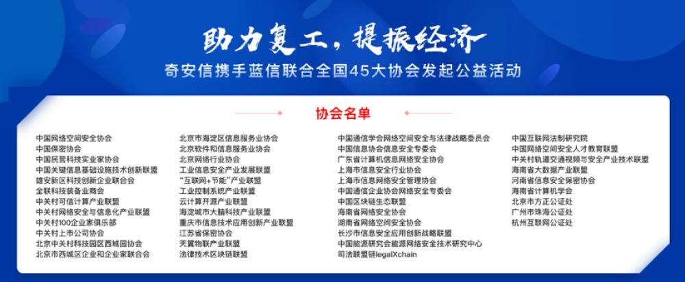 ↑奇安信、蓝信和45家行业协会联合发起公益活动公告