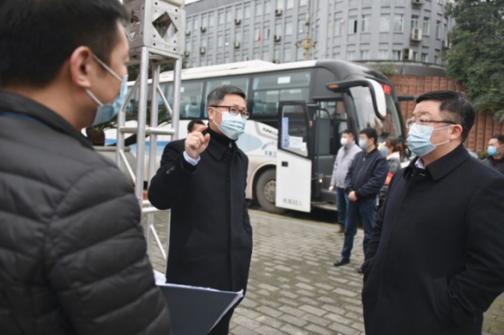 ↑茅台集团党委副书记王焱在员工乘车点了解防疫情况