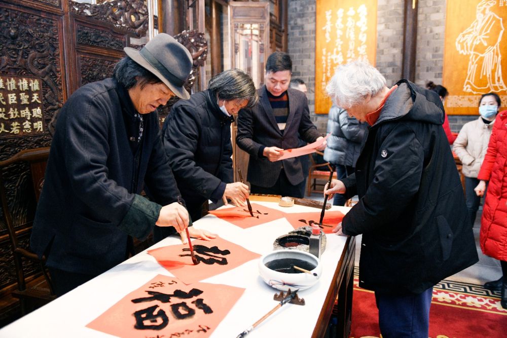 书画艺术和美酒佳酿是中华优秀传统文化的鲜明符号,对满足人民过上美好生活的新期待具有重要精神价值。此次全国书画家代表“艺术下基层”活动正值新年伊始,艺术家们现场泼墨挥毫,书写“福”字和春联送给五粮液基层一线员工,将浓浓笔墨化作美好祝福,祝愿五粮液及广大员工新年新气象,创造更加广阔的美好未来。