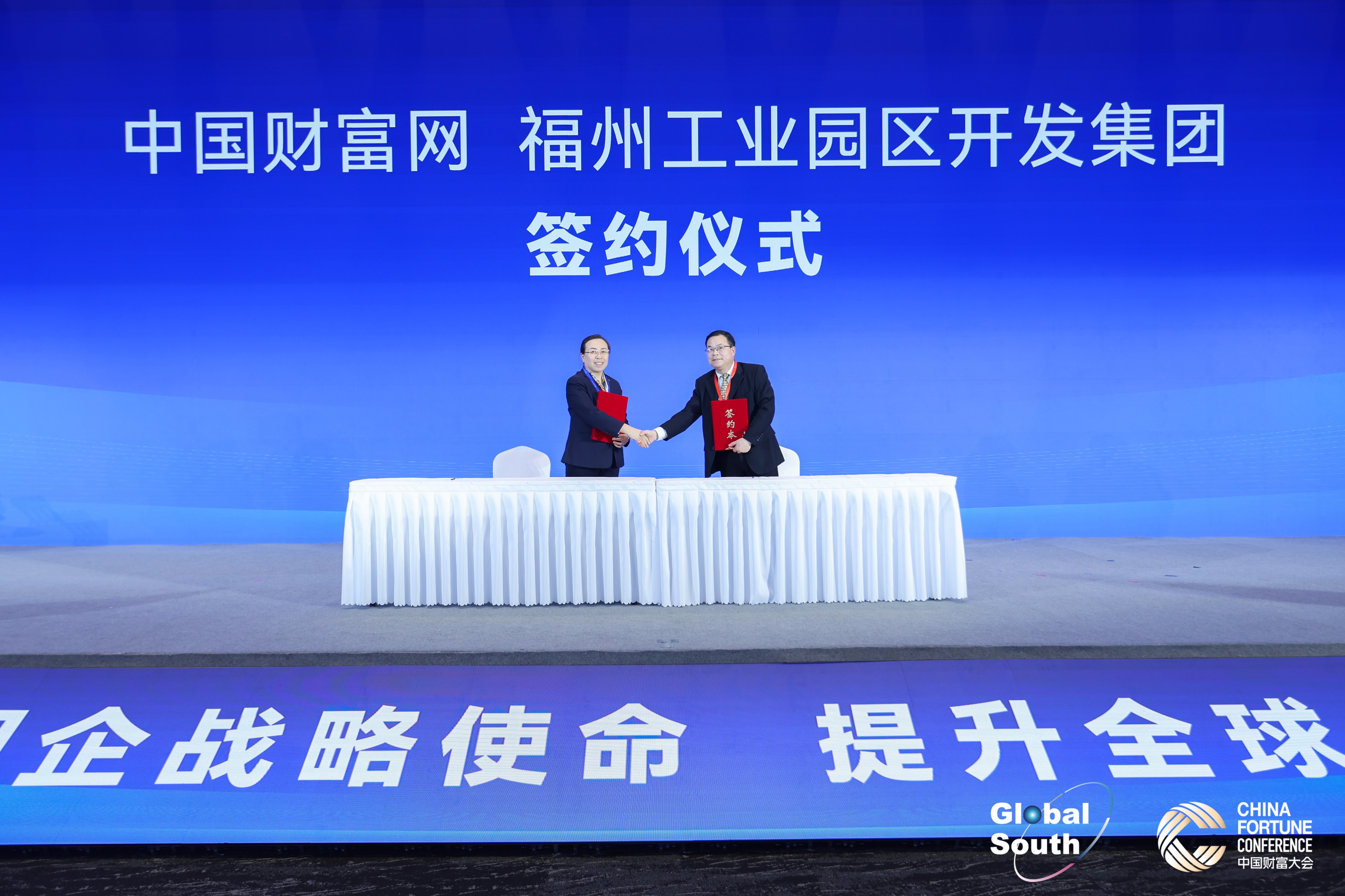 论坛期间,中国财富网与福州工业园区开发集团举行合作签约仪式。中国财富网副总裁、董事张春艳,福州工业园区开发集团有限公司党委副书记、福州空港综保区开发有限公司董事长韩亮代表双方签订合作协议。
