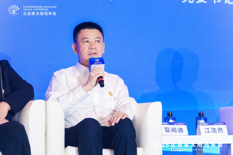 图为中国机械国际合作股份公司党委书记、董事长夏闻迪在2025企业家太阳岛年会主论坛思客对话环节进行发言。