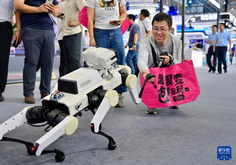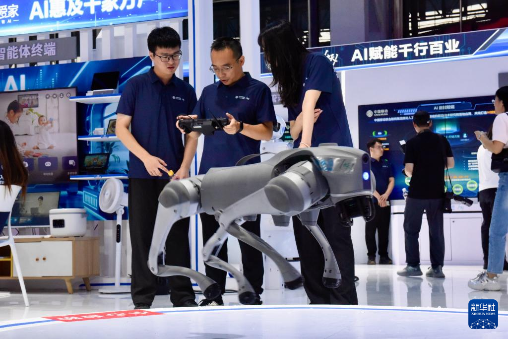 9月7日,中国移动工作人员在调试机器狗。