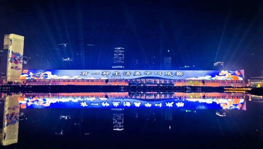 位于天府新区核心区的天府国际会议中心拥有着总长430米、宽26米,总面积约1.1万平方米超大屋顶屏幕——天府之檐,这是亚洲最大单体木结构建筑,也有着世界上最长的数字化屋顶显示屏。天府之檐见证了众多国际性、全国性大型会展活动。