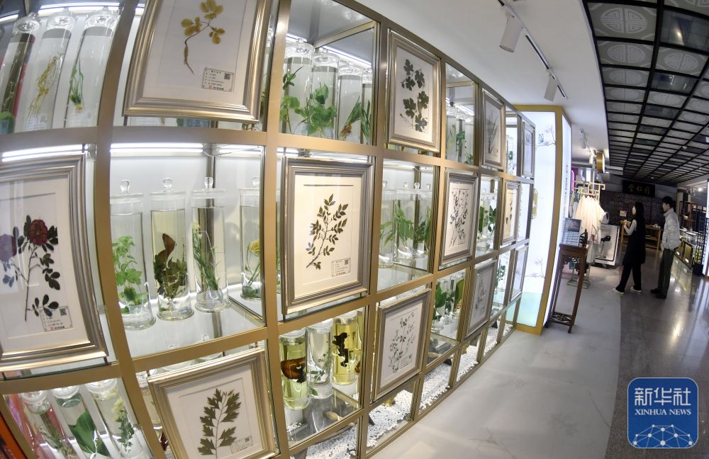 ↑ 11月13日拍摄的同仁堂大栅栏药店非遗展示空间内的药材标本区。