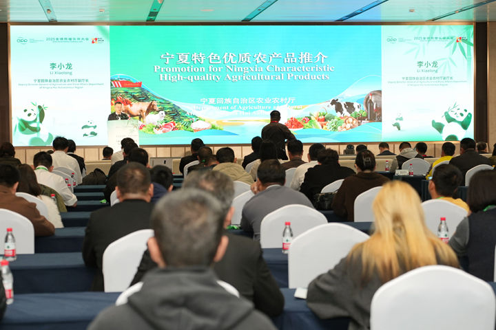 11月21日,在四川成都举办的“2025全球熊猫伙伴大会·宁夏特色农产品推介活动”上,宁夏回族自治区农业农村厅党组成员、副厅长李小龙向与会嘉宾作推介。他表示,宁夏依托黄河滋养与北纬38°光热资源,孕育出以葡萄酒、枸杞、牛奶、肉牛、滩羊、冷凉蔬菜为代表的“六特”产业,形成了一批具有全国乃至国际影响力的区域品牌。