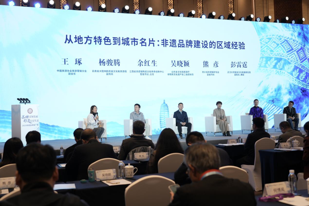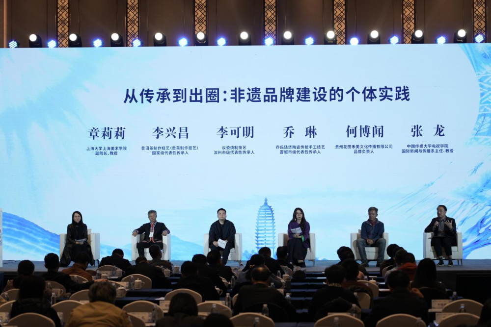 在经验交流环节,8位非遗传承人分别围绕“从传承到出圈:非遗品牌建设的个体实践”和“从地方特色到城市名片:非遗品牌建设的区域经验”分享实践经验,上海大学上海美术学院副院长章莉莉、中国传媒大学电视学院国际新闻与传播系主任张龙、武汉大学国家文化发展研究院副院长彭雷霆和中国旅游协会旅游营销分会副会长王琢4位专家学者进行点评指导。