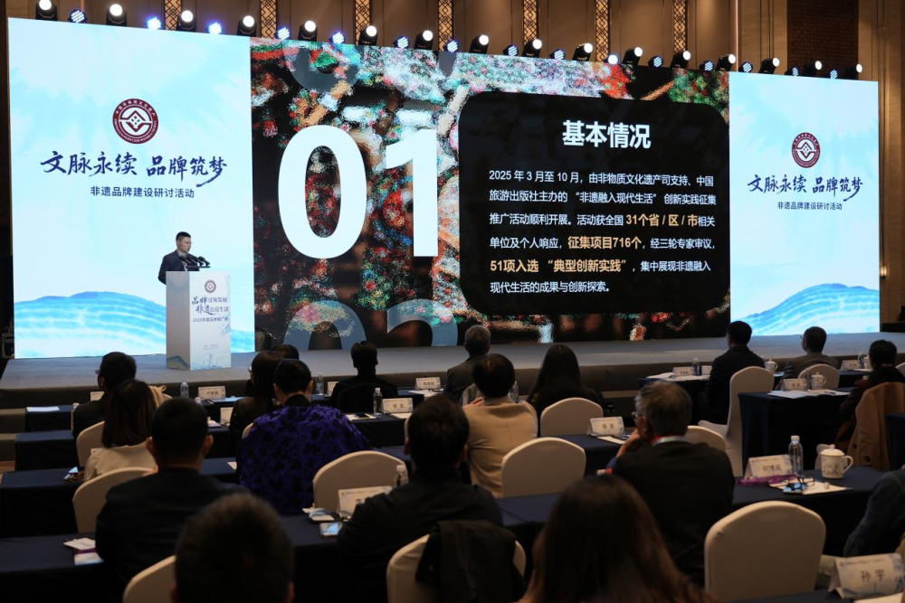 中国旅游出版社副社长胥波作《“非遗融入现代生活”创新实践征集成果分享》主题演讲(2025年11月23日摄)。