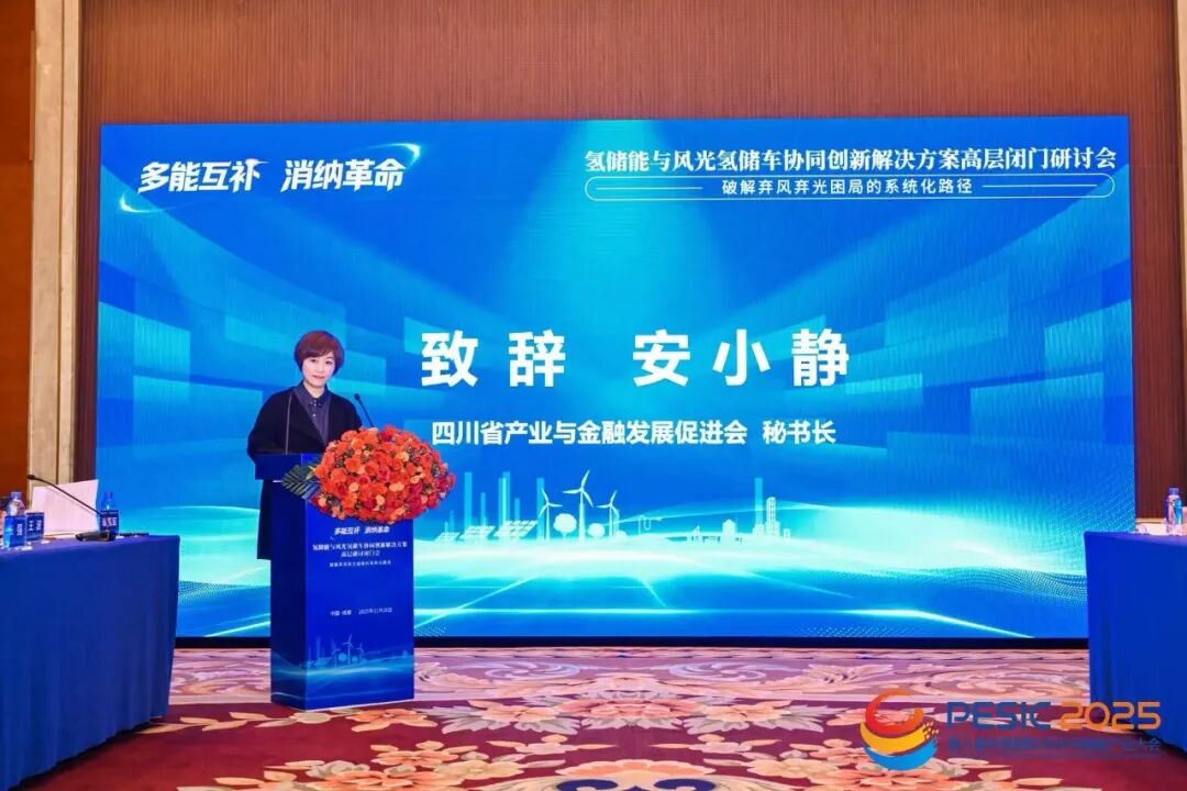 四川省产业与金融发展促进会秘书长安小静在开幕致辞中强调,破解“弃风弃光”困局需推动氢能与风光储协同发展,这不仅是技术课题,更是需要政策、产业与资本深度融合的系统工程。她介绍,产融会通过“政策、产业、金融、科技”四维协同,整合“专家+产业+金融”三大智库资源,以“资本+智本”双轮驱动产业服务,本次会议旨在搭建高端平台,探索可落地的解决方案,共同助力能源转型与“双碳”目标实现。
